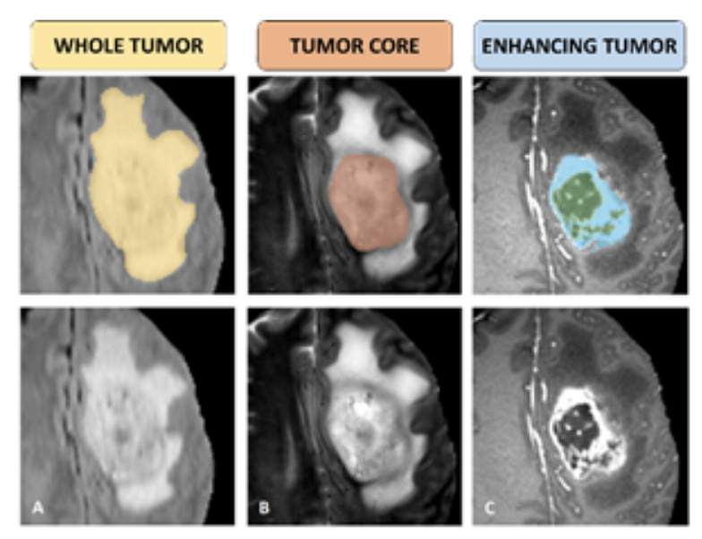BraTS Toolkit: translating BraTS brain tumor segmentation algorithms into clinical and scientific practiceFlorian Kofler, Christoph Berger, Diana Waldmannstetter, Jana Lipkova, Ivan Ezhov, Giles Tetteh, Jan Kirschke, Claus Zimmer, Benedikt Wiestler, and Bjoern H MenzeFrontiers in neuroscience[ bibtex | html | abstract ]@article{kofler2020brats, title = {BraTS Toolkit: translating BraTS brain tumor segmentation algorithms into clinical and scientific practice}, author = {Kofler, Florian and Berger, Christoph and Waldmannstetter, Diana and Lipkova, Jana and Ezhov, Ivan and Tetteh, Giles and Kirschke, Jan and Zimmer, Claus and Wiestler, Benedikt and Menze, Bjoern H}, journal = {Frontiers in neuroscience}, pages = {125}, year = {2020}, publisher = {Frontiers}, html = {https://doi.org/10.3389/fnins.2020.00125}, abbr = {kofler2020brats.png} }Despite great advances in brain tumor segmentation and clear clinical need, translation of state-of-the-art computational methods into clinical routine and scientific practice remains a major challenge. Several factors impede successful implementations, including data standardization and preprocessing. However, these steps are pivotal for the deployment of state-of-the-art image segmentation algorithms. To overcome these issues, we present BraTS Toolkit. BraTS Toolkit is a holistic approach to brain tumor segmentation and consists of three components: First, the BraTS Preprocessor facilitates data standardization and preprocessing for researchers and clinicians alike. It covers the entire image analysis workflow prior to tumor segmentation, from image conversion and registration to brain extraction. Second, BraTS Segmentor enables orchestration of BraTS brain tumor segmentation algorithms for generation of fully-automated segmentations. Finally, Brats Fusionator can combine the resulting candidate segmentations into consensus segmentations using fusion methods such as majority voting and iterative SIMPLE fusion. The capabilities of our tools are illustrated with a practical example to enable easy translation to clinical and scientific practice.