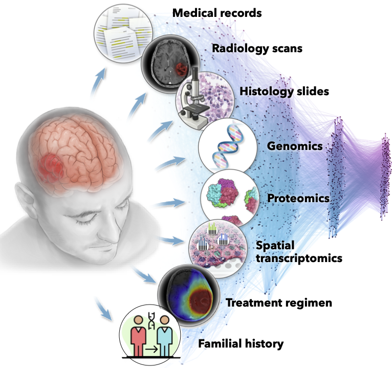 Artificial intelligence for multimodal data integration in oncologyJana Lipkova, Richard J Chen, Bowen Chen, Ming Y Lu, Matteo Barbieri, Daniel Shao, Anurag J Vaidya, Chengkuan Chen, Luoting Zhuang, Drew FK Williamson, and othersCancer Cell[ bibtex | html | abstract ]@article{lipkova2022ai, title = {Artificial intelligence for multimodal data integration in oncology}, author = {Lipkova, Jana and Chen, Richard J and Chen, Bowen and Lu, Ming Y and Barbieri, Matteo and Shao, Daniel and Vaidya, Anurag J and Chen, Chengkuan and Zhuang, Luoting and Williamson, Drew FK and others}, journal = {Cancer Cell}, volume = {40}, number = {10}, pages = {1095--1110}, year = {2022}, publisher = {Elsevier}, html = https://doi.org/10.1016/j.ccell.2022.09.012, abbr = {lipkova2022ai.png} }In oncology, the patient state is characterized by a whole spectrum of modalities, ranging from radiology, histology, and genomics to electronic health records. Current artificial intelligence (AI) models operate mainly in the realm of a single modality, neglecting the broader clinical context, which inevitably diminishes their potential. Integration of different data modalities provides opportunities to increase robustness and accuracy of diagnostic and prognostic models, bringing AI closer to clinical practice. AI models are also capable of discovering novel patterns within and across modalities suitable for explaining differences in patient outcomes or treatment resistance. The insights gleaned from such models can guide exploration studies and contribute to the discovery of novel biomarkers and therapeutic targets. To support these advances, here we present a synopsis of AI methods and strategies for multimodal data fusion and association discovery. We outline approaches for AI interpretability and directions for AI-driven exploration through multimodal data interconnections. We examine challenges in clinical adoption and discuss emerging solutions.